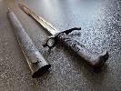gestern habe ich auf der WSBG in Greding auch diese dunkle Schönheit erstanden: Das Stück mit den Markierungen auf der Klinge: mit den Abnahmestempel: „FW“, „66“ und „S“ auf der einen und mit dem Hersteller „A&A.S“ auf der anderen Seite hat nur noch auf der Parierstange einen Abnahmestempel mit „FW“, „66“ und „S“. Am Griffkopf wie üblich oder sonst konnte ich an der Waffe keinen weiteren Stempel mehr finden. An der Scheide trägt nur das Ortblech einen Abnahmestempel mit „S“ (Bild 6 unten).