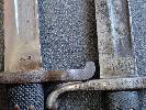 Liegt es am Hersteller, dass dessen Abnahmeoffizier nur Klinge, Parierstange und einmal die Scheide markiert hat oder liegt es daran, dass es sich um ein Stück handelt, dass nur im Depot lag und nie ausgegeben wurde? Denn einen Truppenstempel besitzt das Stück auch nicht und die Klinge ist mit ein paar Rostflecken bis zur Spitze absolut top erhalten. Auch sind weder die Lederscheide noch die Griffschalenleder geschrumpft, was mich sehr erfreut. Ein weiterer Unterschied zu meinem anderen