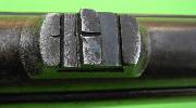 Bei dem hier gezeigten Stück dürfte es sich aber um eine veränderte Waffe handeln, welche zwar einen Visiersockel auf der Patenschanzschraube besitzt, der aber die Kimme fehlt. Dafür sitzt ein Standvisier mit massivem Sockel auf dem Lauf. Die ursprüngliche Serienversion besaß nur eine Standkimme auf dem Schwanzschraubenblatt.