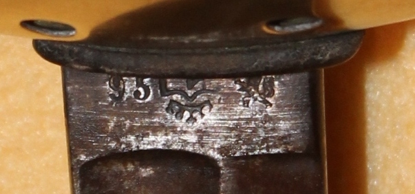 Weiterhin trug der Säbel das Wolfsangel-Wappen des Solinger Herstellers Clemen & Jung und im Klingenrücken eine weitere Marke, L Habich in Darmstadt.