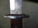Zu diesen "etwas" verschliffenen Pärchen gibt es eine kleine Familienanekdote: Als junger Waffenstudent veranstaltete ich auf unserem Bundeshaus meiner Verbindung ein Räubermal in Kerzenschein: Es gab Spanferkel dazu frisches Obst und Gemüse und lediglich Bretter - jeder musste sein Messer selbst und sich in entsprechender Kluft mitbringen. Sonstige Utensilien waren verboten. Auf der Suche nach einem passenden Schneidwerkzeug erwarb ich damals auf einer Online-Börse diesen angeblichen "Schlachtfeldfund" mit dunklen dafür gut erhaltenen Holzgriffschalen. Als ich dieses Stück in Empfang nahm, zeigte ich auch sogleich meine räuberisch-barbarische Seite und ließ das Stück von meinem Waffenmeister so scharf wie eine Mensurklinge schleifen. Den Schliff sieht man bis heute. Ja ich weiß, Asche auf mein Haupt.