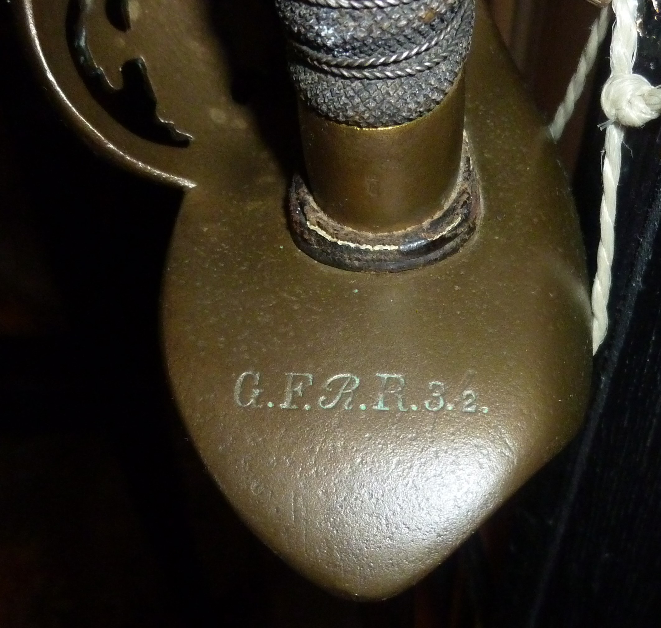 Schade, auch keinen Herstellerstempel? Die sehen ja bei den dienstlichen Stücken meistens auch anders aus und erlauben evtl. Rückschlüsse. Gibt es evtl. eine nummerngleiche Scheide?