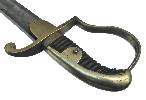 Griffbügel mit Durchbruch für Faustriemen in Parierstange übergehend, beidseitig Parierlappen