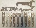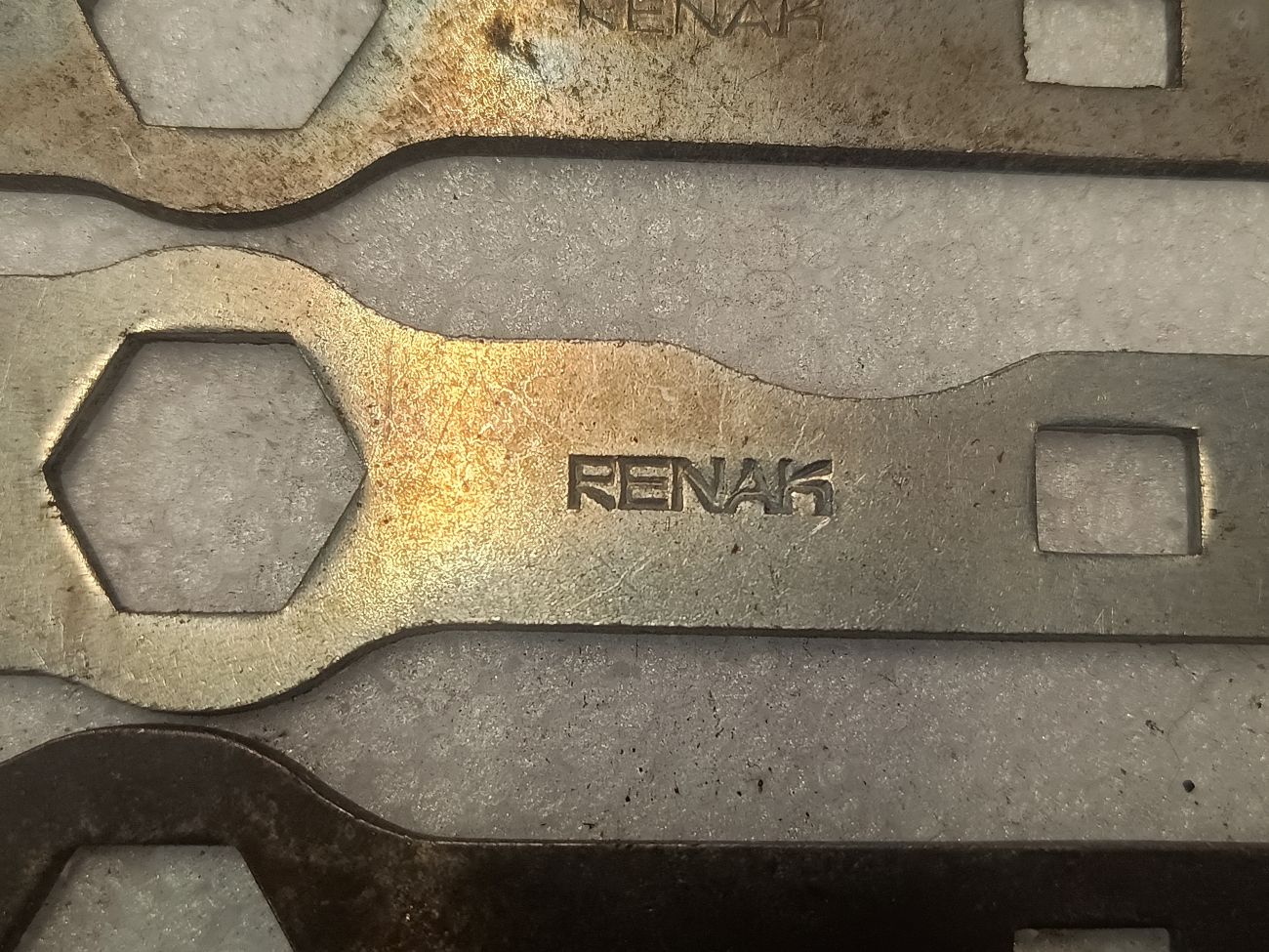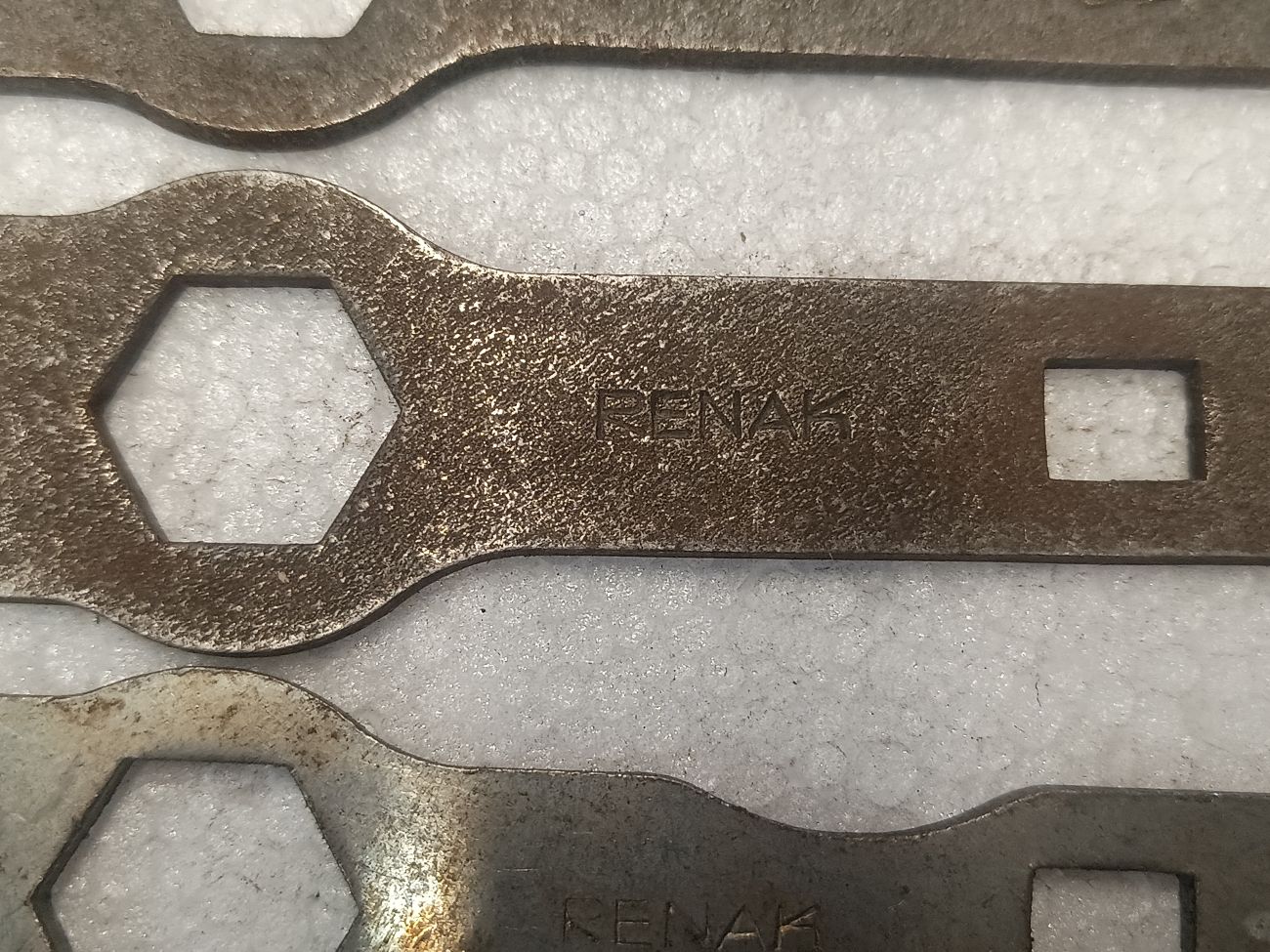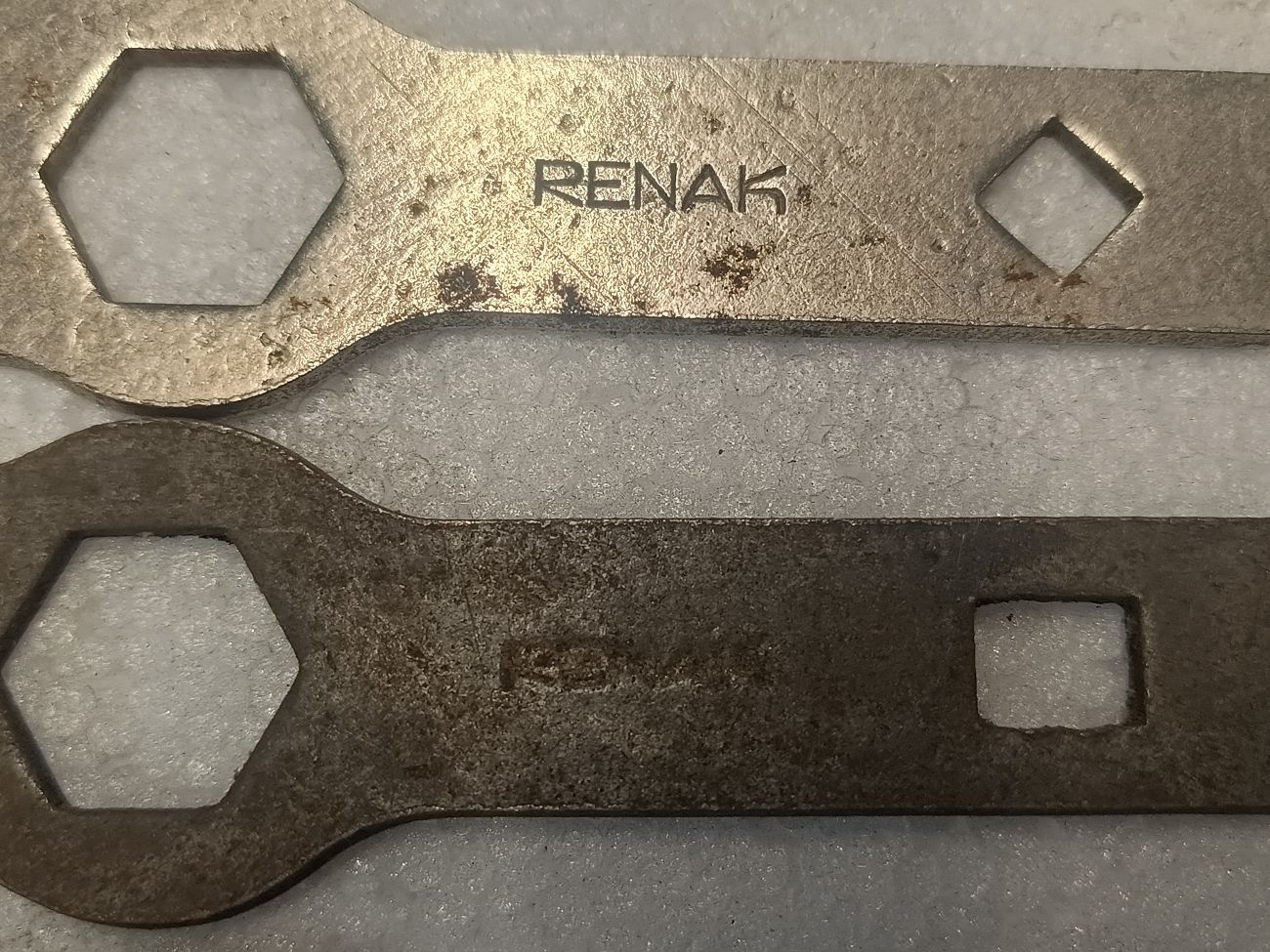 Mit denen habe ich es nicht so, denn tatsächlich besitze ich schon seit vielen Jahren kein Fahrrad mehr. Vorgestern hatte ich aber meine Maulschlüsselschublade etwas weiter herausgezogen und mal direkt alle meine Hakenschlüssel herausgeklaubt. Kam einiges zusammen. Die gleich aussehenden waren vor der Wende ein am Diamant- und Mifa-Fahrrad, in der kleinen Werkzeugtasche mitgeführtes Standardwerkzeug. Interessant an meiner Ansammlung sind die unterschiedlichen Oberflächenvergütungen. Darunter befinden sich schwarze und vernickelte Varianten.