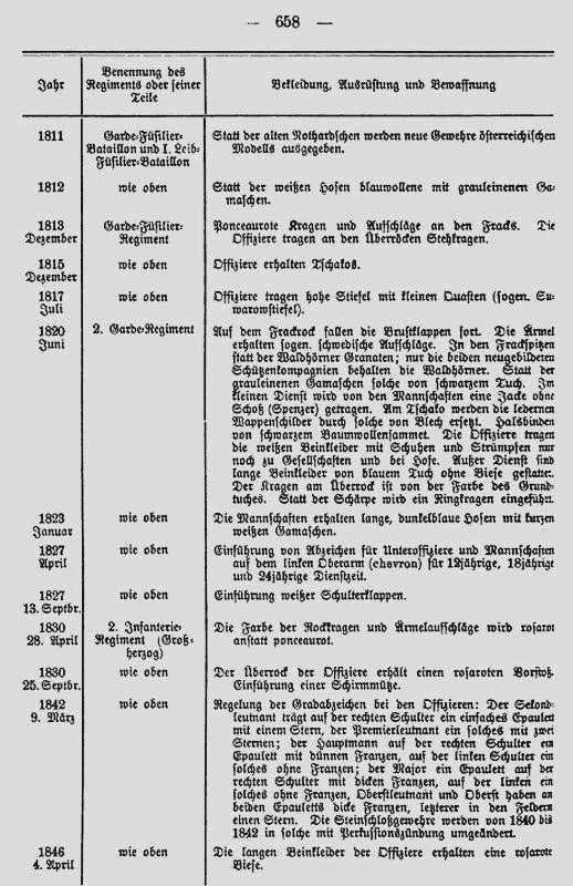 Angaben zu Uniformierung und Bewaffnung von 1811-1902