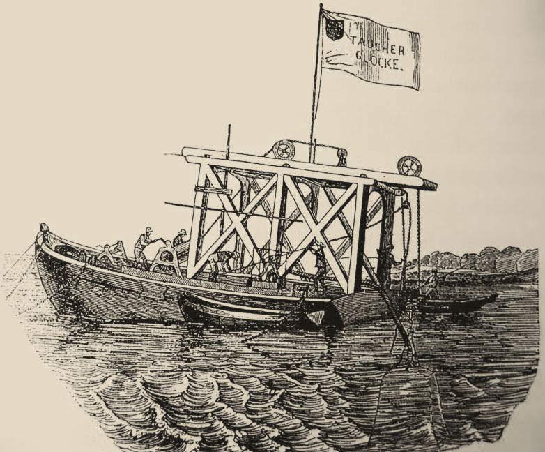 Da für die Bergung der "Christian VIII" vom Meeresgrund in Eckernförde keine geeigneten Mittel zur Verfügung standen, musste aus Hamburg ein Schiff mit Taucherglocke herangeholt werden.