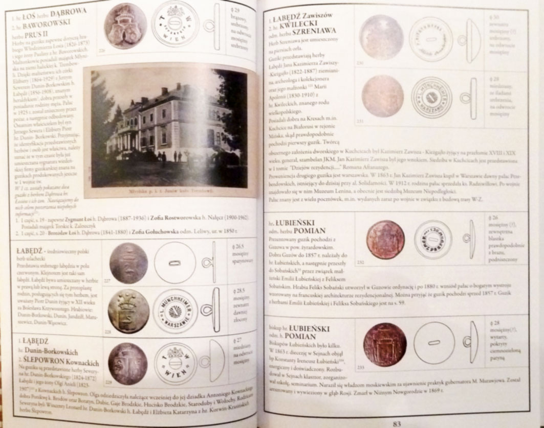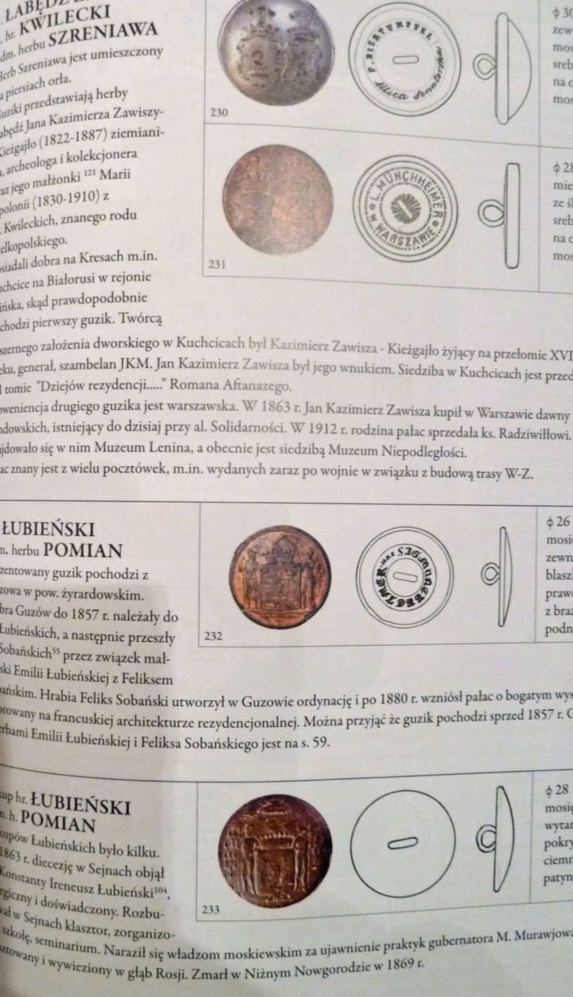 (2008), 138 Seiten, mit der Beschreibungen von rund 586 Knöpfe und 139 Ansichtskarten. Text auf polnisch.