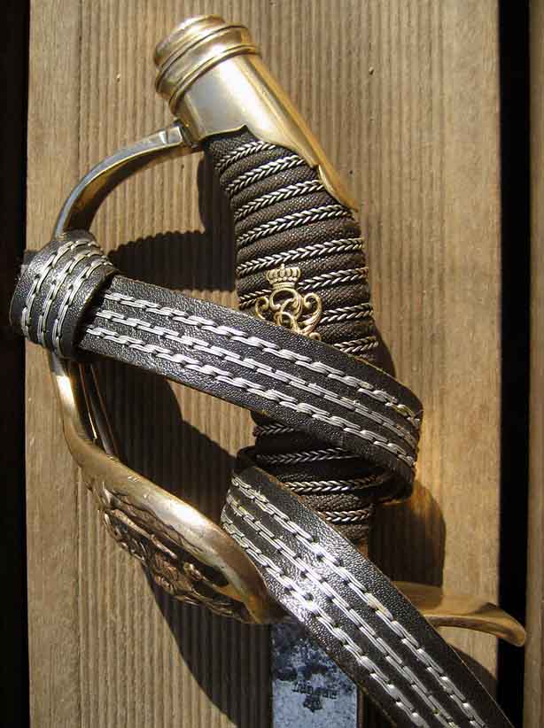 dünne gegenläufig verdrillte Silberdrahtwicklung. Erst bei späteren Fertigungen kamen die dicken Wicklungen (analog auch zu sonstigen Waffen der preußischen Portepeeunteroffiziere) zur Verwendung. Dünne Wicklungen wurden später auch nicht mehr ausgebessert, sondern gleich durch die haltbarere neue Form ersetzt.