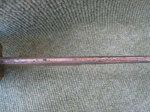 Länge 99 cm, Klingenlänge 80,5 cm, Klingenbreite 25 mm, Gefäß und Schlepper mit Abnahmen, Klingenrücken W 93, Gefäß mit Abnahme 14 ?