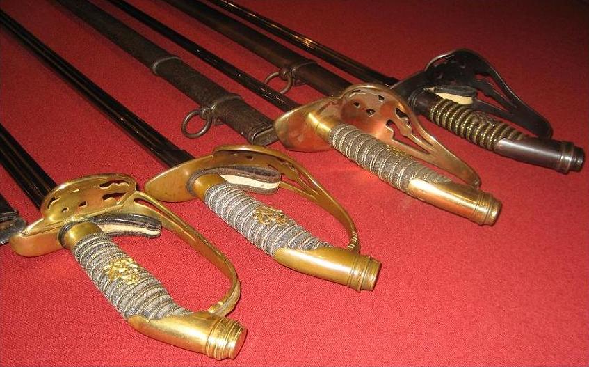 Möchte Euch mal ein Bild zeigen, was Carsten seine Aussage untermauert. Auf dem Bild sind unter anderem auch noch der "Infanterie Offizier-Degen mit Füsselier-Gefäss und der Infanterie Offizier-Degen mit Füsselier-Gefäss und gebogener Klinge" (über die Bezeichnung kann man wohl streiten, habe sie aus einem Katalog von "W,K&Cie") zu sehen. Da der zweite Tragering entfernt wurde, nach 1910.