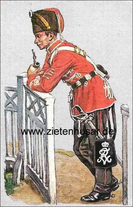 Zu Sammelbilder: Das unten gezeigte Sammelbild (Zeitabschnitt 1843 - 63) verwirrt beim Betrachten. Der Zietenhusar trägt das Modell des Säbels für Gardehusaren.