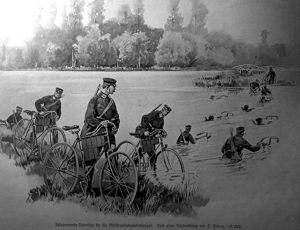 Schwimmende Fahrräder für die Militärradfahrerabteilungen