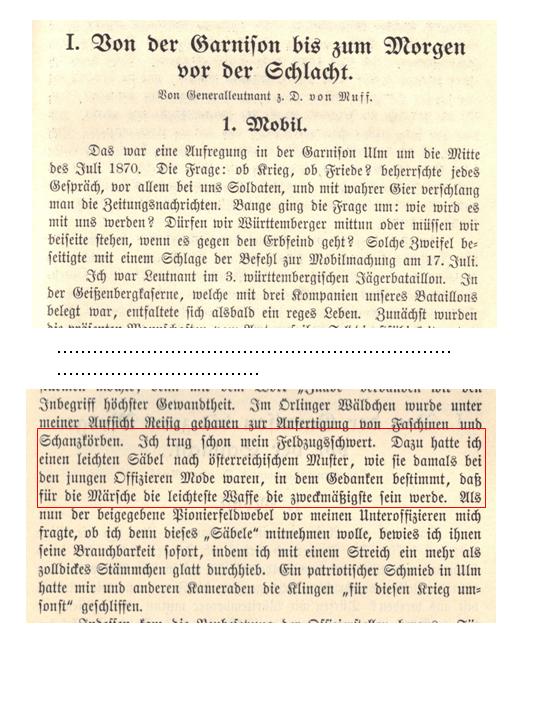 aus den Kriegserinnerungen des Generalleutnant a.D. von Muff,ehem. Leutnant im 3. württembergischen Jägerbataillon.