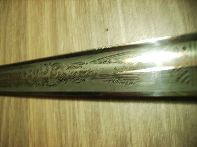 der Säbel hat keine Stempelungen oder Herstellerangaben, ist nicht Scharf und die Klinge enthält eine Ätzung. (macht mich alles bissle skeptisch).