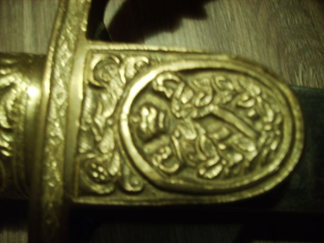 Schön wären Fotos der Klingenätzungen und der Motive auf dem Griffbügel, der Griffkappe und den Parierstangenlappen.