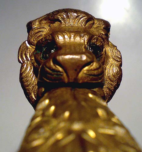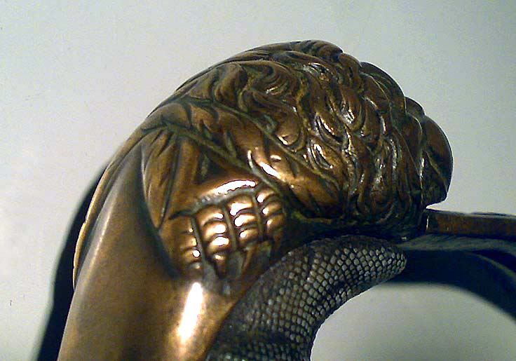 Um das "Löwenhafte" des Kopfes zu unterstreichen, finden sich bei manchen Stücken gekreuzte Tatzen an der Rückseite des Kopfes unter der Löwenmähne, manchmal auch stärker stilisiert (z. B. beim Artillerie-Offiziersäbel):