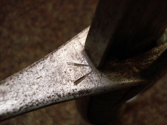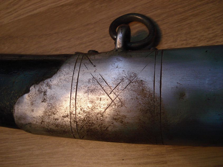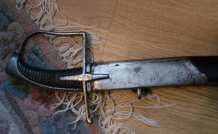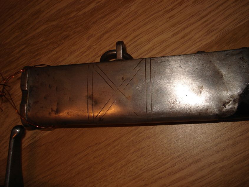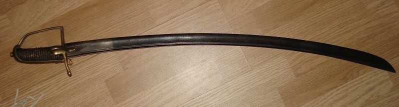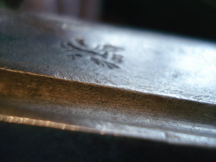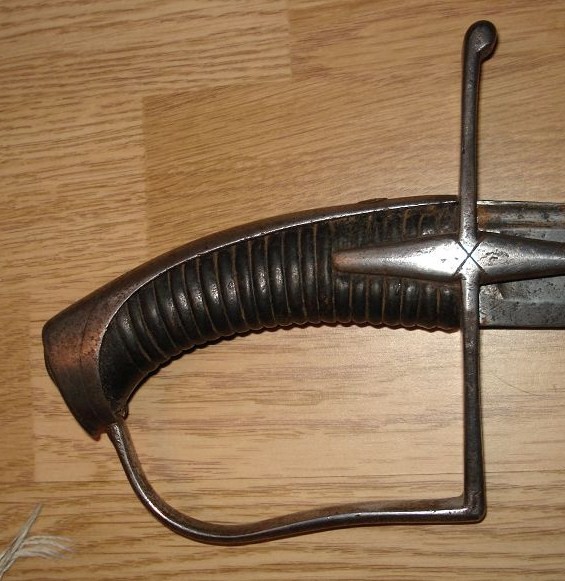Es gibt sicher schönere Säbel, als Mannschaftswaffe ist es mein Favorit. Gut zu sehen das "V" unter der Parierstange, Adler und Potzdam auf der Klinge.