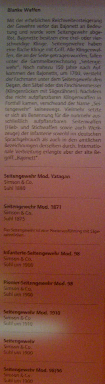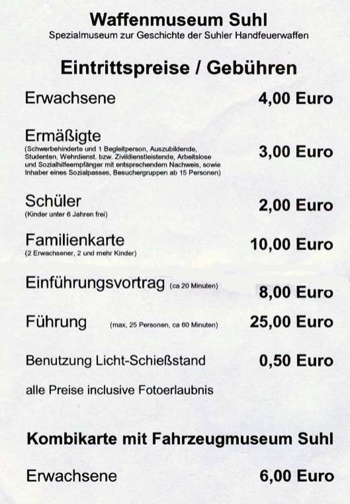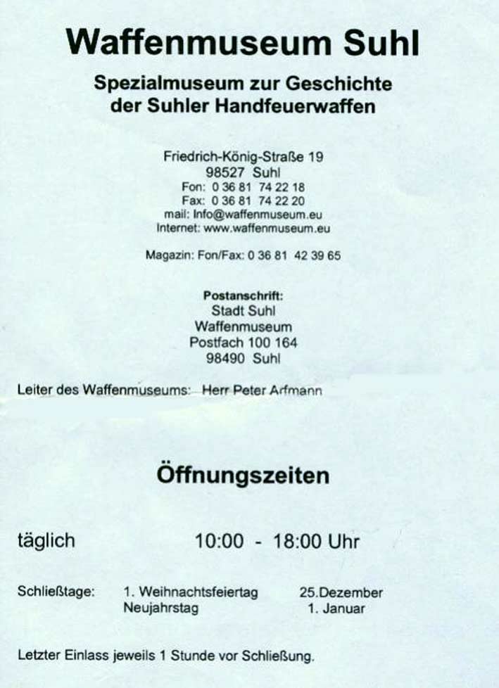 Der Name trügt. So ist auch der Hinweis auf dem Handzettel - Prospekte waren aus - auch dringen notwendig: "Spezialmuseum zur Geschichte der Suhler Handfeuerwaffen". Suhler Blankwaffenhersteller zählen eben nicht zum Schwerpunkt des neu errichteten Museums.
