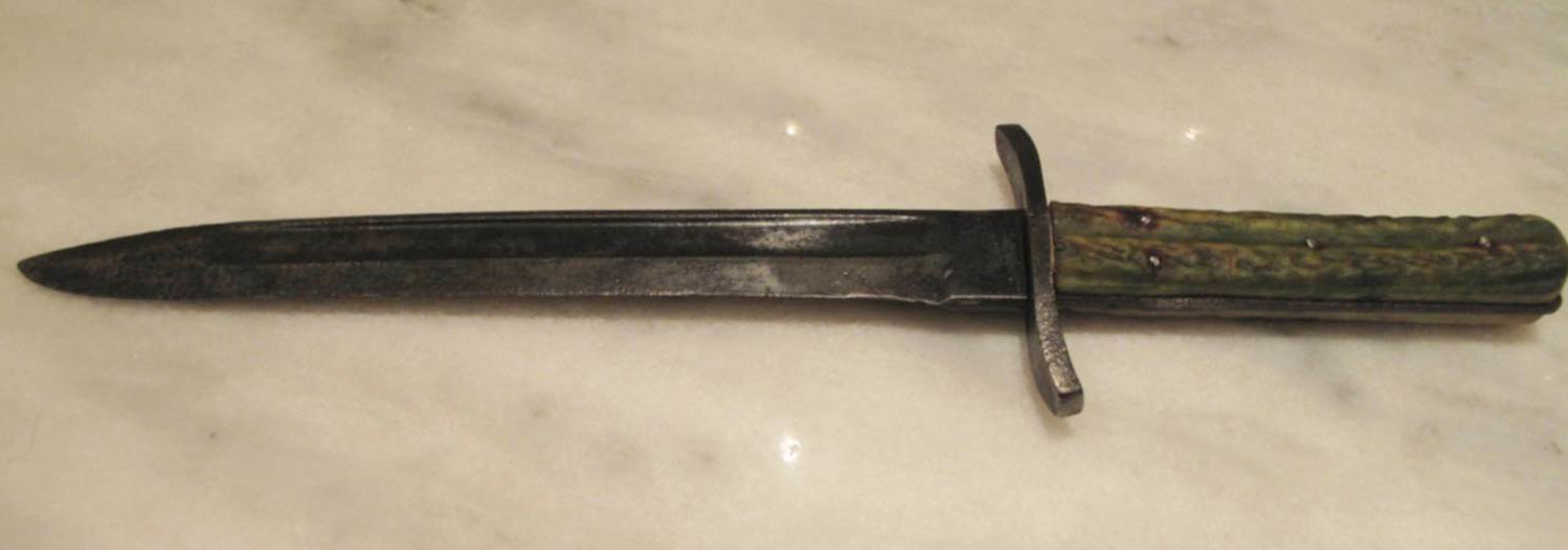 Hallo,ich habe einfach mal ein paar bilder eingestellt auf der klinge steht weyersberg kirschbaum solingen ich habe das gute stück auf dem flohmarkt gekauft meine vermutung ein altes bajonett mit einem nachträglich angebrachten horngriff dieser ist leider auf einer seite grün angelaufen,
