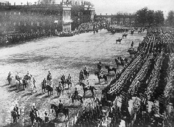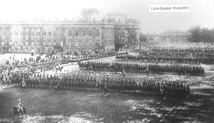 Leib-Garde-Husaren-Regiment bei der Frühjahrsparade vor dem