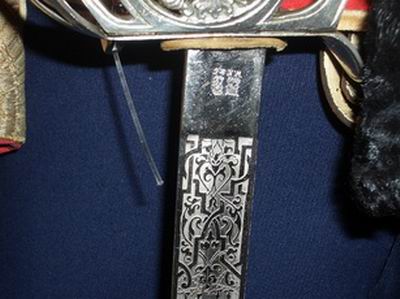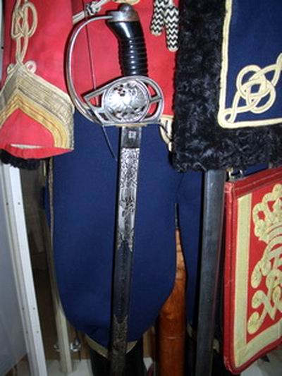 Der Kavallerie-Degen eines Angehörigen des Leib-Garde-Husaren-Regiments mit Truppenstempel.