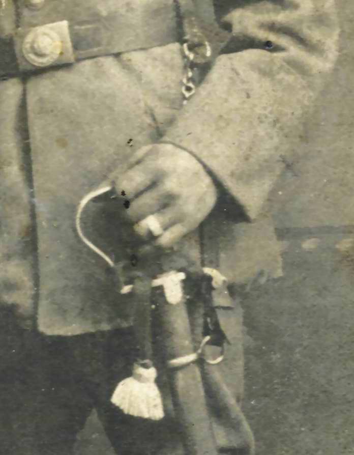 Unberittene sind ohne Säbel. Sie tragen in diesem Fall das Seitengewehr am Leibriemen.