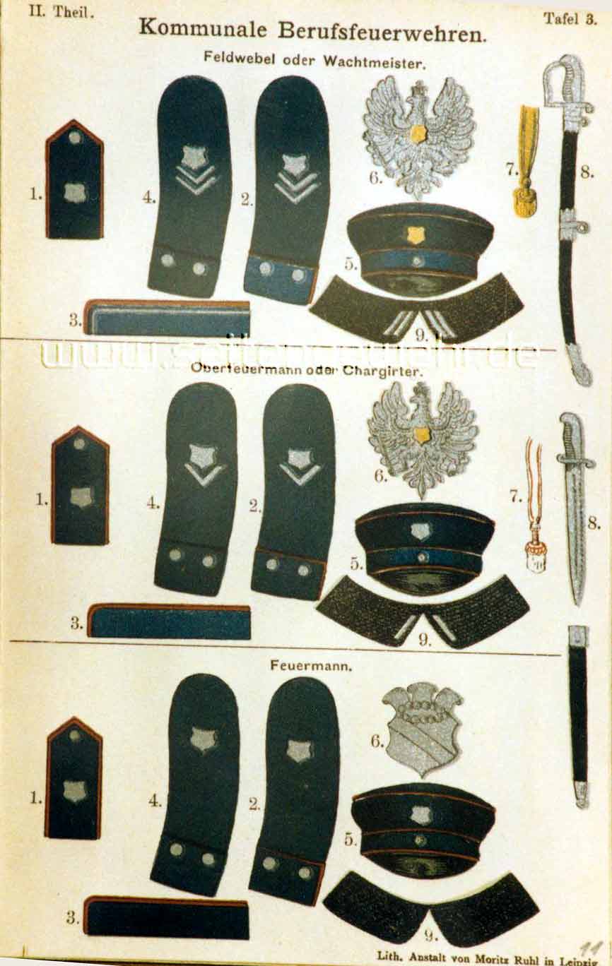 Abbildungen aus der Ruhl-Reihe "Bekleidung und Ausrüstung der Preussischen Feuerwehren" vom Verlag Moritz Ruhl, Leipzig 1901.