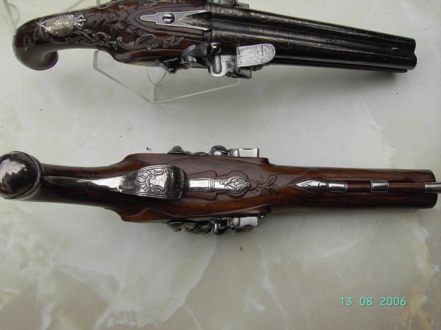 Zur allgemeinen Erbauung mal etwas ganz Besonderes. Die nachfoolgenden Bilder zeigen ein Pistolenpaar, gefertigt vom Berliner Büchsenmacher van der Fecht für Friedrich den Großen. Dieser gab das Paar als Geschenk an seinen Bruder Heinrich als Belohnung für seine treuen Dienste während des Siebenjährigen Krieges.