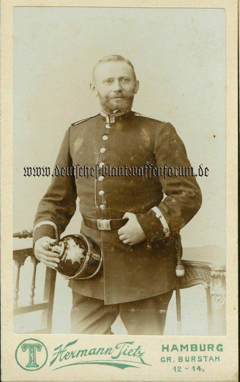 Das Königlich Preussische Lauenburgische Feldartillerie-Regiment Nr. 45 wurde erst 1899 errichtet und keinen Bezug zum Hamburger Bürgermilitär. Die Jahrhundertwende liegt zwar im Entstehungszeitraum der Fotos, nur fehlt mir hier der Zusammenhang, da A45 preußisch uniformiert war.