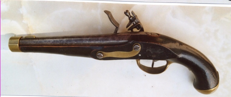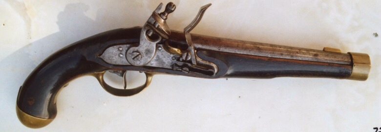 Die vorliegende Pistole ist in der Literatur nicht nachweisbar und dürfte auf Grund der zahlreichen Detailunterschiede zum regulären Muster 1823 Vorseriencharakter haben. Das Schloss M 1812, der spezielle Mündungsring, der im übrigen an der Unterseite wegen des leider fehlenden Ladestocks abgeflacht ist und zudem die Stirnseite des Vorderschafts komplett abdeckt, das Fehlen jeglicher Kontroll- und Revisionsstempel, aber das Vorhandensein eines großen preußischen Adlers an der Laufunterseite und vor allem der Truppenstempel belegen eindeutig den preußischen Staatsbesitz.
