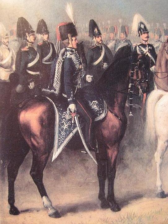 rechts im Vordergrund ein Offizier der kurhessischen Garde du Corps.