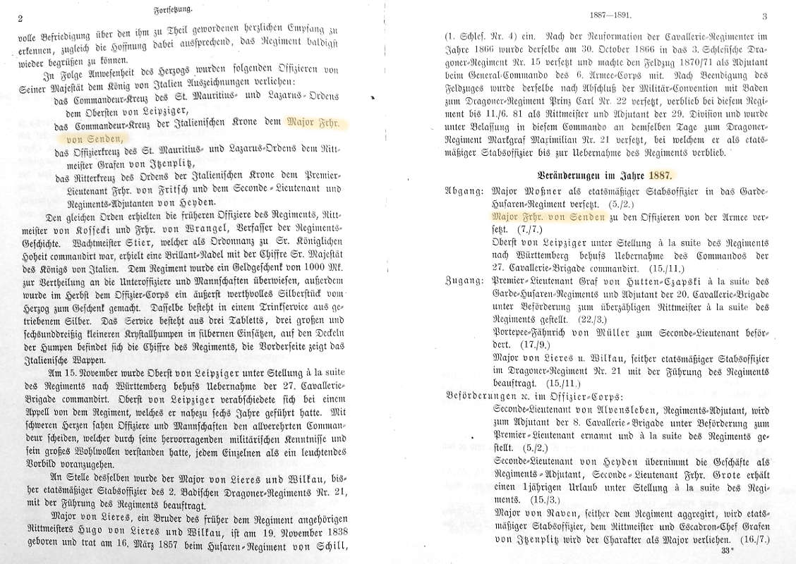 Weitere Informationen über Major Freiherr von Senden erhält man in der