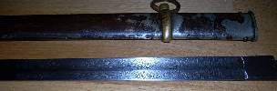 Ich glaube die Scheide ist nicht die dazugehörige.. wurde evtl mal ergänzt denke ich, da ich mehrere Bilder fand, aber diese Scheiden gehörten an ein ähnliches Stück! Zu meinem müsste eigentlich eine Lederscheide gehören wenn ichs richtig gesehen/gelesen habe!