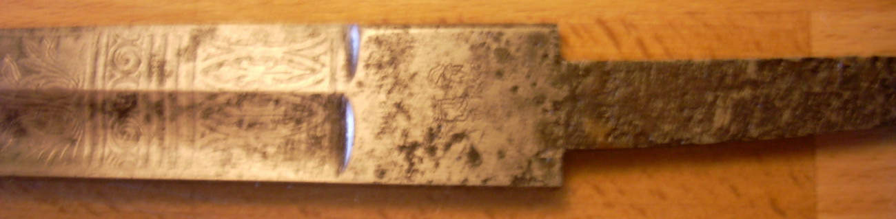 Ein Hersteller könnte (muß aber nicht) sich im Klingenrücken oder auf der Fehlschärfe unter dem Parierstangenlappen finden.