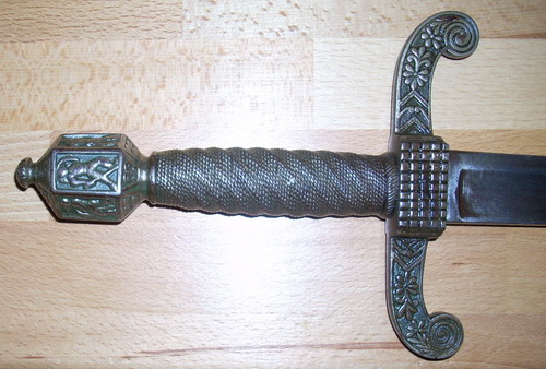 Ich glaube überhaupt nicht an ein Griffstück aus dem Historismus. Dazu sind die Gestaltung und Gußqualität viel zu grobschlächtig. Eher denke ich an die "antiken" Blankwaffen, die ab den 70ern in Spanien, Italien und anderen Speiseölländern en gros als Souvenirs feilgeboten wurden wurden. Pauschalreise, Pauschalsouvenir. Vllt hat ein findiger Produzent ein Kontingent alter Seitenwaffen erworben und so verkaufsfördernd modifiziert. Macht sich doch neben Röhrenden Hirsch und Königsseepanorama sehr gut!?