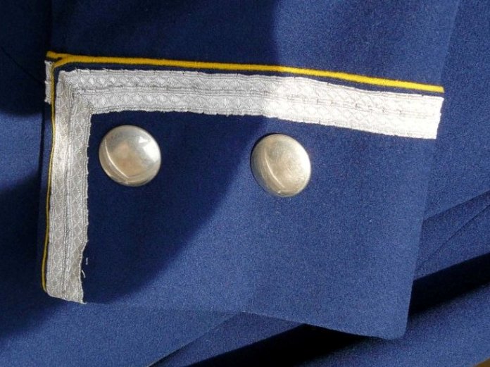 Die doppelt angebrachte Unteroffizierslitze an den Ärmelaufschlägen ist NVA oder Wehrmacht. Am Kragen ist breite gemusterte Unteroffizierslitze aus der Kaiserzeit. Es gibt Schatten am Kragen, die vermuten lassen, dass stattdessen mal etwas Breiteres vernäht war.