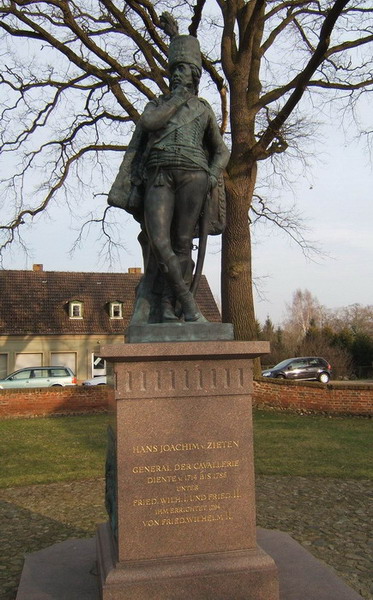 Der Säbel des alten Zieten, den der Husarenheld während des Siebenjährigen Krieges trug, befindet sich in dem Postament der Zietenbüste zu Wustrau, dem alten Familiengut der Zieten. Dieser Säbel, welchen Friedrich der Große dem alten Zieten nach dem zweiten Schlesischen Kriege zum Geschenk machte, ist insofern eine Merkwürdigkeit, als Zieten diesen Säbel während des ganzen Siebenjährigen Krieges nur einmal gezogen hat, und zwar zu seiner persönlichen Verteidigung. Am 2. November 1765, einen Tag vor der Schlacht bei Torgau, sah sich Zieten auf einem Rekognoszierungsritt, den er mit einem einzigen Offizier unternahm, plötzlich von sechs feindlichen Husaren umringt. Der alte Haudegen hieb sich tapfer durch, und der auf der Klinge noch deutlich sichtbare Rost legt Zeugnis davon ab, daß bei dieser Gelegenheit reichlich feindliches Blut geflossen sein mag. Der letzte Nachkomme Zietens, der noch bei der Einweihung des Denkmales Friedrichs des Großen Unter den Linden in Berlin, dem Erzbild seines Vaters gegenüber stehen konnte, wurde, obwohl ihm der große König das Leutnantspatent in die Wiege gelegt hatte, kein Held. Als ein schlichter Landsmann kam er wenig aus Wustrau heraus und beschäftigte sich in seinen letzten Lebensjahren hauptsächlich damit, die Zietensche Familiengruft auszubauen. - Als König Friedrich Wilhelm IV. einst einen Besuch in Wustrau machte, führte ihn der letzte Zieten an die eben fertig gewordene Gruft, auf welcher sich ein Riesenfeldstein befand. Der König wies auf eine Stelle des Steines und meinte: "Zieten, der Stein hat ja einen Fehler." - Der alte Herr erwiderte lächelnd: "Majestät, der darunter liegen wird, hat noch mehr."