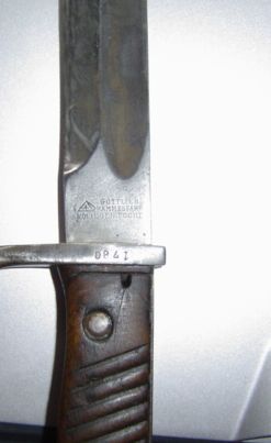 zum Drückknopf gefräst wurde. Die Klingenabnahme W17 und der kleine Abnahmestempel