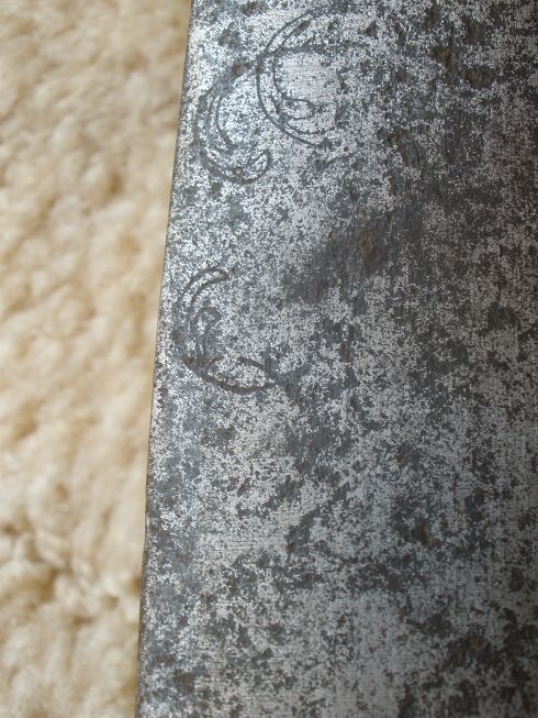 Ich sehe die Reste eines Chiffre "FWR" (Friedrich Wilhelm Rex). Einen weiteres Indiz ist die Jahreszahl "1831" auf dem Klingenrücken (bekannt auf "Blücher-Säbel"). Bei dem Truppenstempel bin ich mir noch nicht über die Bedeutung im klaren: "P.B.1.9." (Pionier-Bataillon Nr.1,Waffe Nr.9 ?)