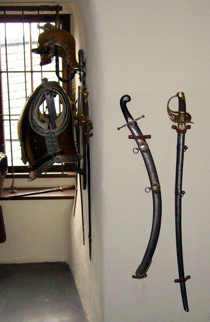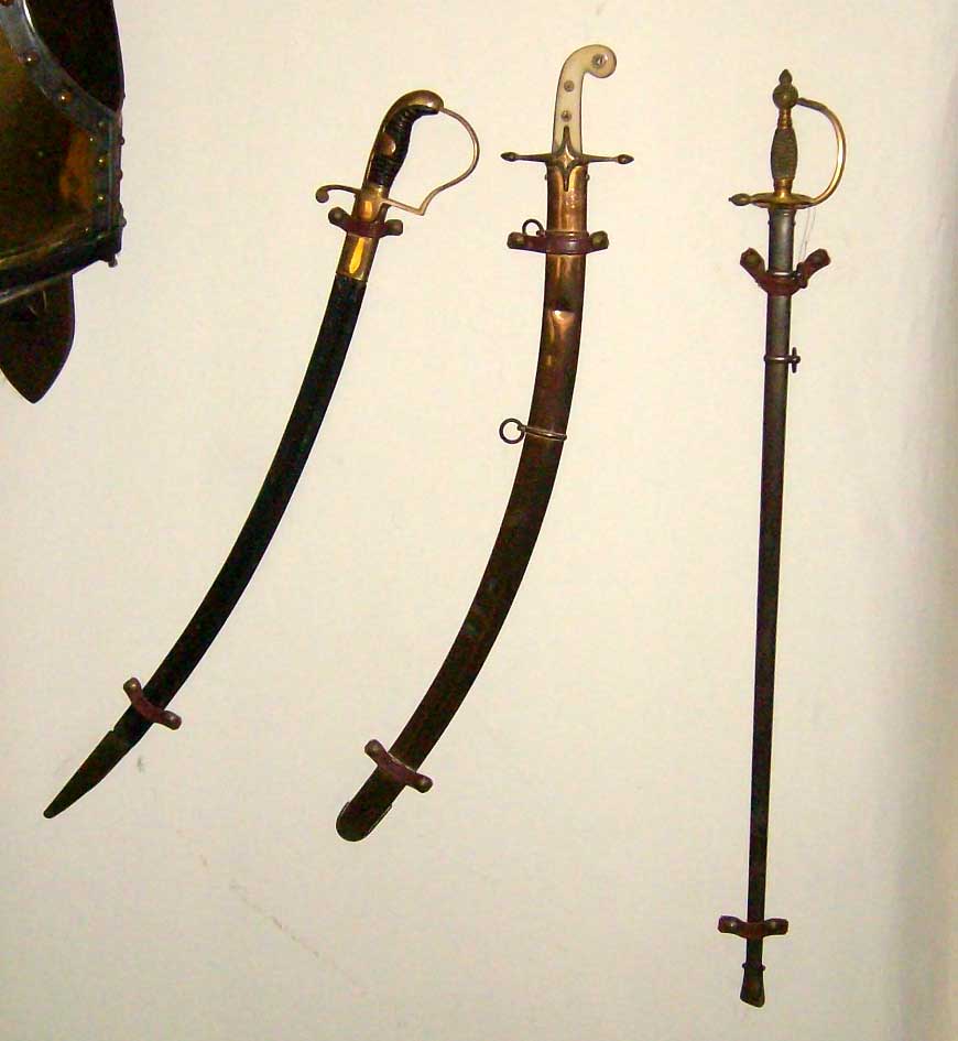 Waffensammlung IV. Der Degen auf dem mittleren Bild dürfte vermutlich ein "Augustaner" sein. Warum er falsch in der Scheide steckt ...