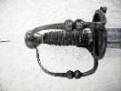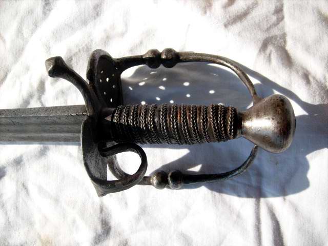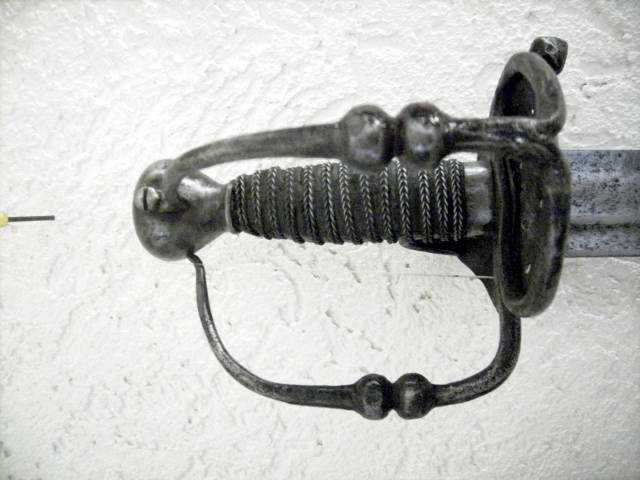 Griff mit zwei Nebenbügeln mit je zwei wulstartigen verdickungen,Parierstange ist zum Ort hin stark abgebogen mit halbrunden Verdickungen.Auf der Quartseite ist ein Daumenring.