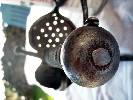 Eisernes Gefäß mit zwei asymmetrischen ovalen Stichblättern eins siebartig.