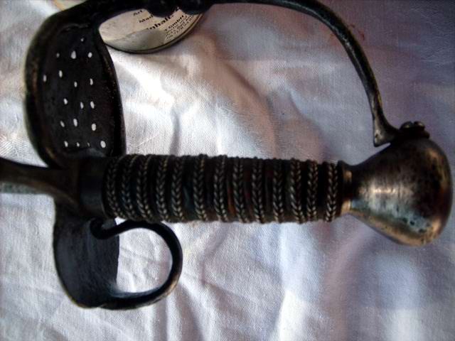 Griffhülse ist aus Leder mit gezopften Eisendraht.