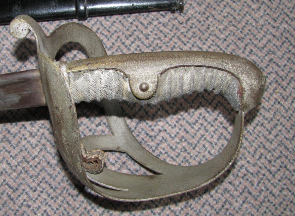 Dem Säbel sieht man sein Alter (Bj. 1900 plus minus 10 Jahre) schon an. Die Drahtwicklung am Griff, der Hilze, fehlt, die Scheide wurde farblich einmal neu überarbeitet und die Vernickelung am Korb (Handschutz) löst sich. Trotz allem aber durchaus sammelwürdig, wenn die Klinge nicht beschliffen ist, was ich nicht annehme. Ein kleines highlight ist die erhaltene Fingerschlaufe.