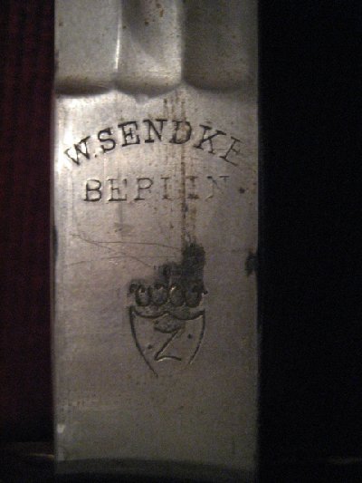 Der von Dir angegebene, vermeindliche Hersteller ist vielleicht ein Berliner Händler. Das Herstellerzeichen ist das sich unter dem Namenszug befindliche, überkröhnte Wappenschild mit dem Z darin. Es käme die Solinger Firma "Clemen & Jung", bzw. die Nachfolgefirma "E. & H. Neuhaus" in Frage.