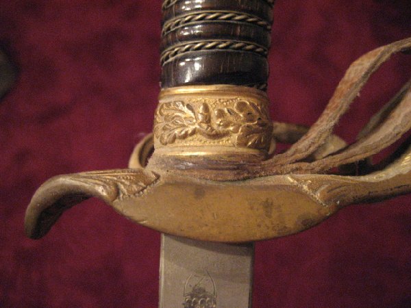 Der von Dir gezeigte Degen ist aber eine private, nicht revisions- und truppengestempelte Waffe. Neben den fehlenden Stempeln, ist es auch die Griffwicklung, die darauf hinweist.