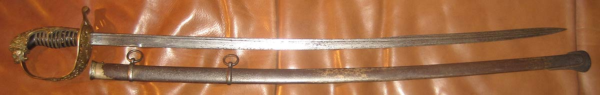 Dieser Leutnant trägt einen hessischen Löwenkopf-Infanterie-Offiziersäbel.