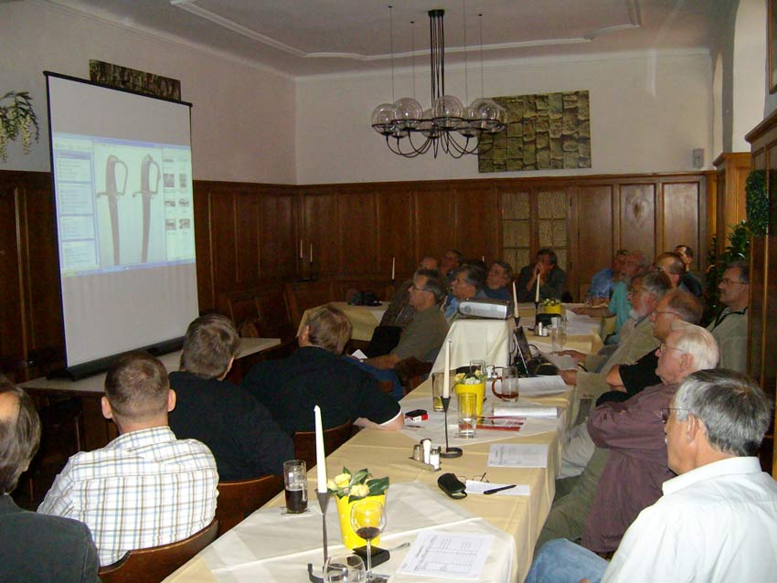 Begonnen wurde mit Vorträgen von Bernd Windsheimer über die Degen der altpreußischen Dragoner-Offiziere sowie von Georg Helmchen über die frühen preußischen Füsilier-Offizier-Säbel. Gerade der letzte Beitrag löste darauf hin eine lebhafte Diskussion aus.