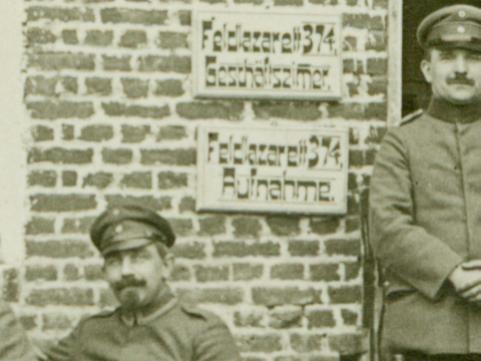 Die Aufnahme entstand im Feldlazarett 374. Dieses befand sich in der französischen Gemeinde Dercy (Dep. Aisne, Arr. Laon).