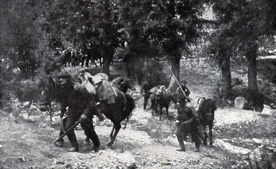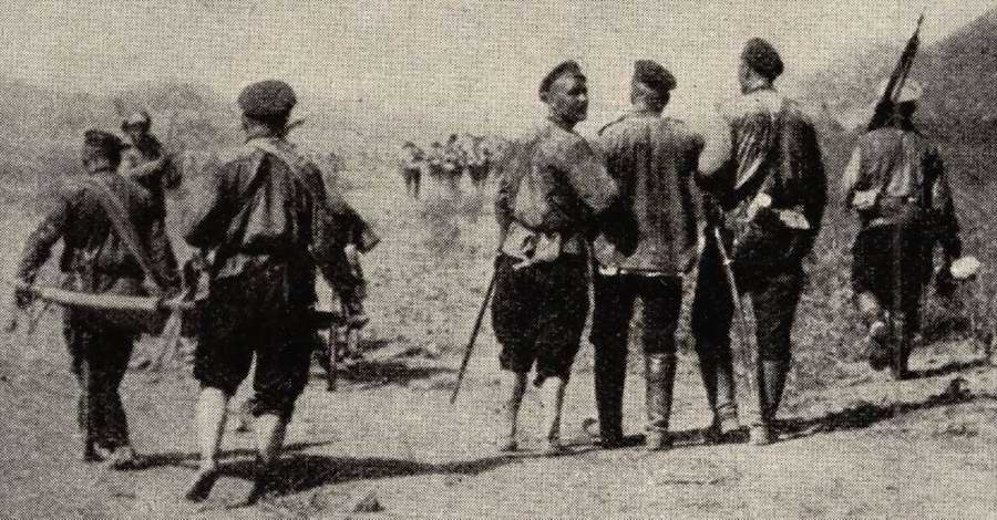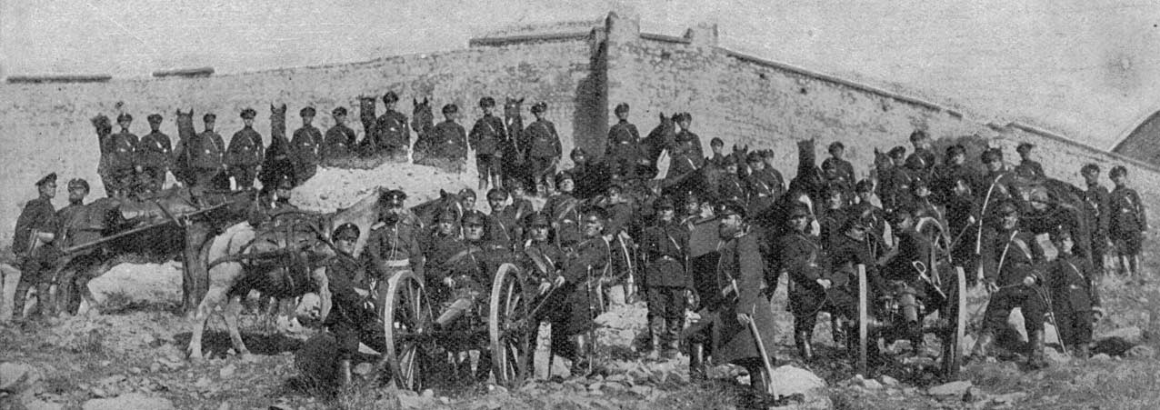 Freischarenführer Popovitsch mit seinen Montenegrinern im russischen Hauptquartier zu Mukden.